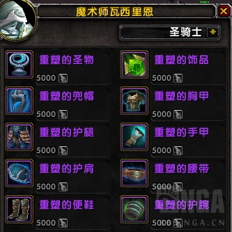 而在旁边的瓦西里恩,可以用5000碎片购买一个重塑装备。也就是很多人吐槽的血岩碎片小贩,虚空碎片小贩。重塑装备开出的装备非常随机,有可能是绿色物品,也可能是橙装……
