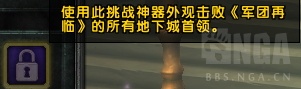 神器的第六外观被称作“挑战外观”,每个神器都有专属的史诗任务。(之前坐骑也说是史诗任务,但是并不史诗嘛!)