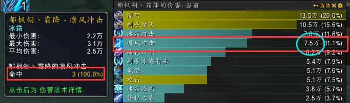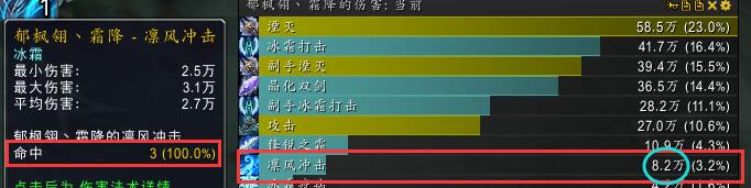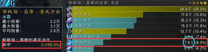 3).我在黑锋要塞找3个挨着的木桩。第一凛风伤害为3目标不叠加锋锐之霜的伤害。第二次为主目标叠加5层的伤害,第三次为2个目标叠加5层锋锐之霜的伤害,第四次为3个目标全部叠加锋锐之霜的伤害。然后对比其中的差别。