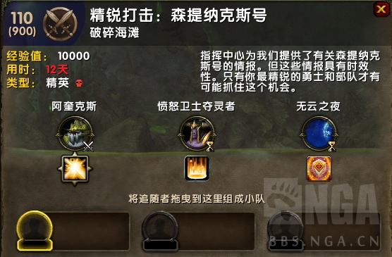 精锐打击:森提纳克斯号,所需时间12天,可以缩减,可以通过2个应对技能时间减半再减半。奖励7500虚空碎片。