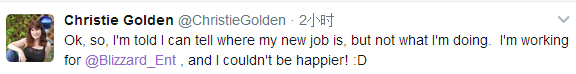 魔兽官方小说作者克里斯蒂·戈登今早在推特上宣布,现在已经加入暴雪,为暴雪工作了。