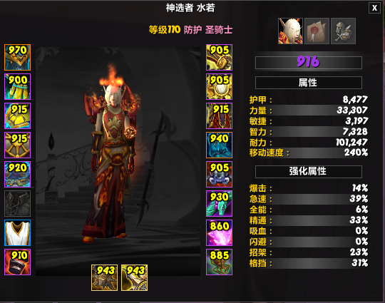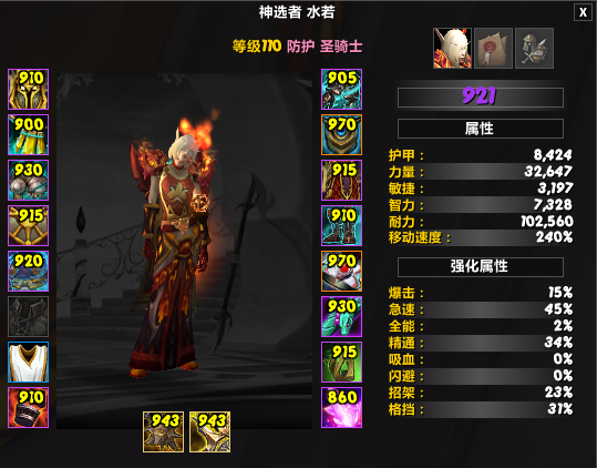 饰品选择:地狱火契约、其他带精通的坦克饰品。