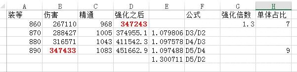 那么我们可以很直观的看出,890无衣服的花环伤害基本跟860有衣服的伤害持平。并且890的花环通过SIMC模拟,890的花环比860的占比提高了2%+,总体伤害大约提高2.5%。