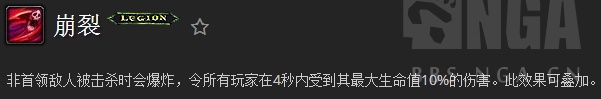 崩裂:非首领敌人被击杀时会爆炸,令所有玩家在4秒内受到其最大生命值10%的伤害。此效果可叠加。