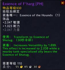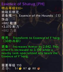 装备:提高5457点全能,如果附近有一个坦克专精的队友佩戴了法哈格的精华,则提高(5457X1.2)点全能。