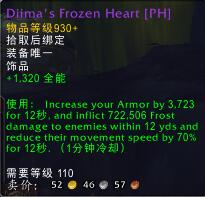 使用:提高你的护甲7689点,持续12秒,并且在效果持续期间对你周围12码内的每个敌人造成共545700点冰霜伤害并减少他们的移动速度70%。(1分冷却)