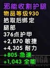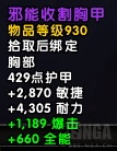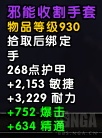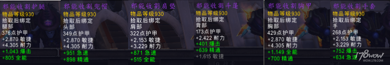 邪能收割护腿:急速变成暴击且数值增加,全能数值减少。