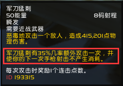 1.“额外攻击”指的是军刀猛刺有35%几率触发一次额外的军刀猛刺,不是左右开弓。