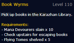 任务要求:击杀10个法力吞噬者,检查楼上逃了的书,把5本飞走的书放会书架。