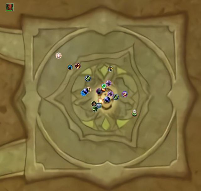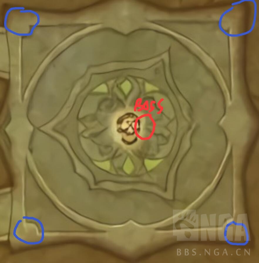 3、场地一角的绿色拉人。在boss引导一个不能打断的技能时候进去即可。平时站在外边输出。