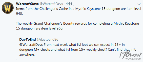 Q:这周的15层+大秘境副本箱子能开出什么装等的装备,另外15层+的低保箱子又是什么装等?到处都找不到信息。