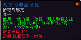 邪能焦镜:常驻合剂道具,110级全属性提升500点,1500虚空碎片。