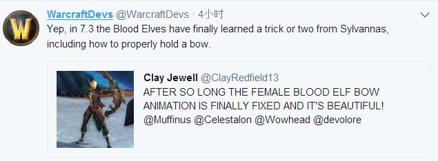 是的,7.3中血精灵从希尔瓦娜斯那里学到了一两招,包括如何正确的拉弓。