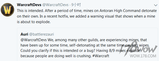 Q:我们和其他魔兽世界公会一样,已经被地雷折磨了一段时间了,地雷总是在被清除时自爆,你能说说这是故意的还是BUG啊?感觉打得不错却总有8/9个地雷爆炸,团队里再有一两个傻子的话,这尼玛没法打啊,很让人很崩溃。